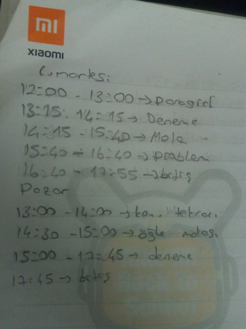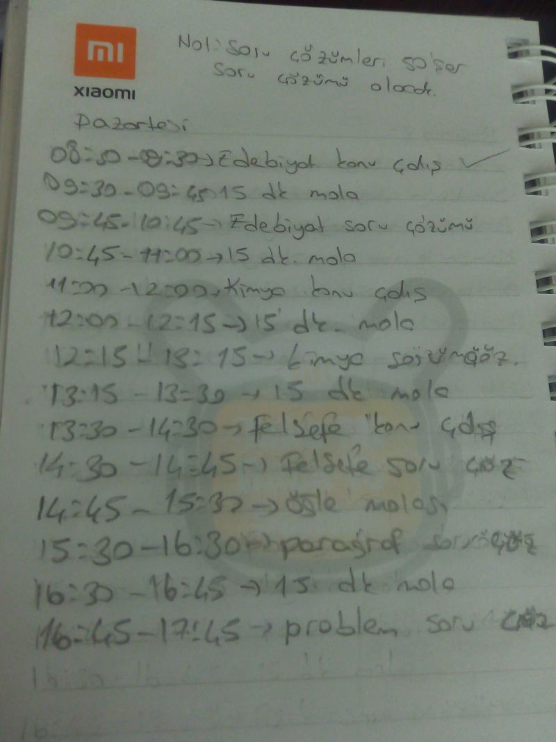 Cumartesi ve pazar da paragraf ve problem deneme çözmeye falan ayırmıştım