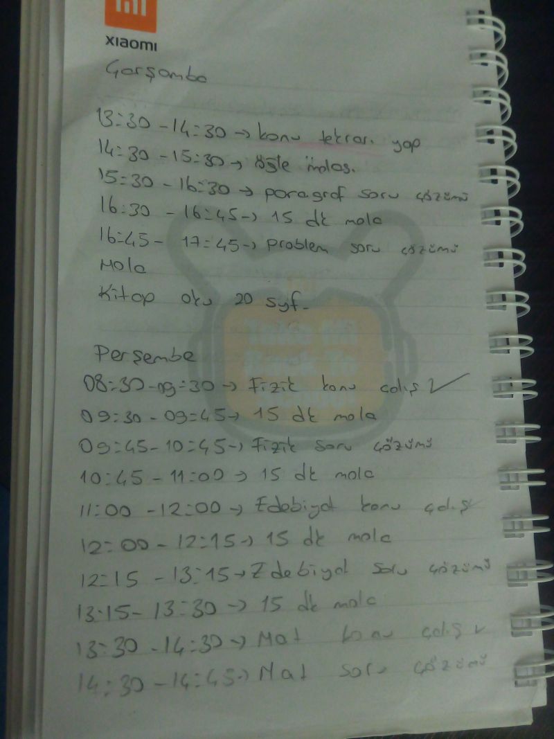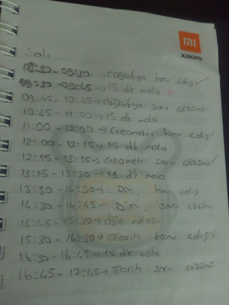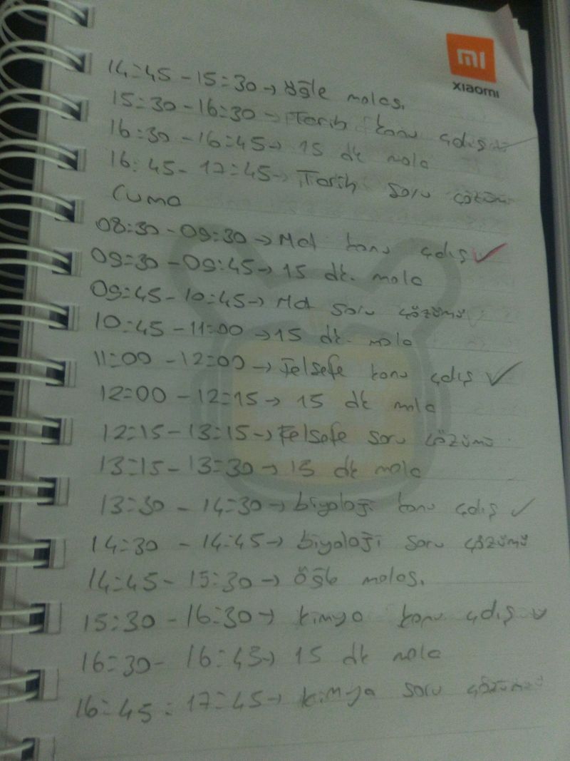 Benim tyt çalışırken kullandığım ders programı